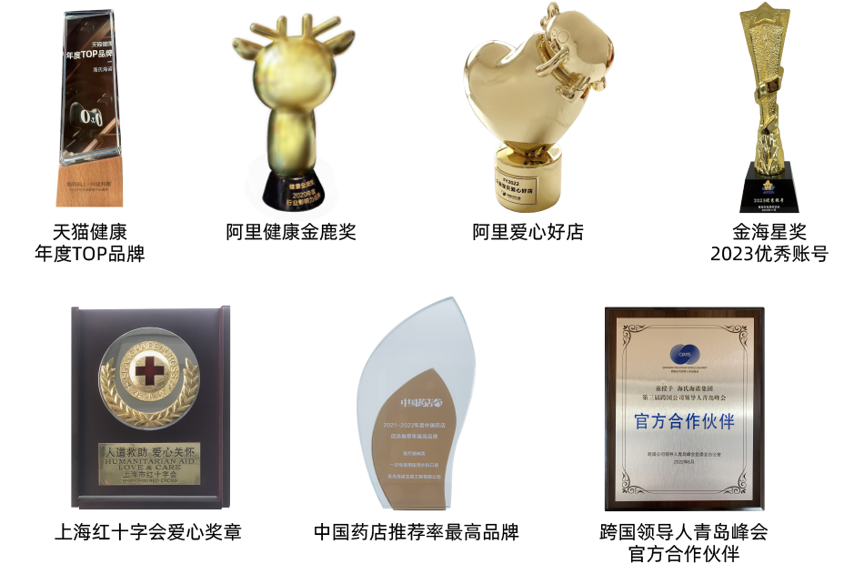 海氏海诺集团先后获得青岛市守合同重信用企业、青岛市优秀民营企业、中国医用敷料行业杰出品牌、中国优秀民营企业、中国医疗器械行业最具创新活力竞争力前三强企业、中国驰名商标、山东省高端品牌培育企业、山东省“品质鲁药”建设示范企业、国家级“专精特新”小巨人等荣誉和奖项。